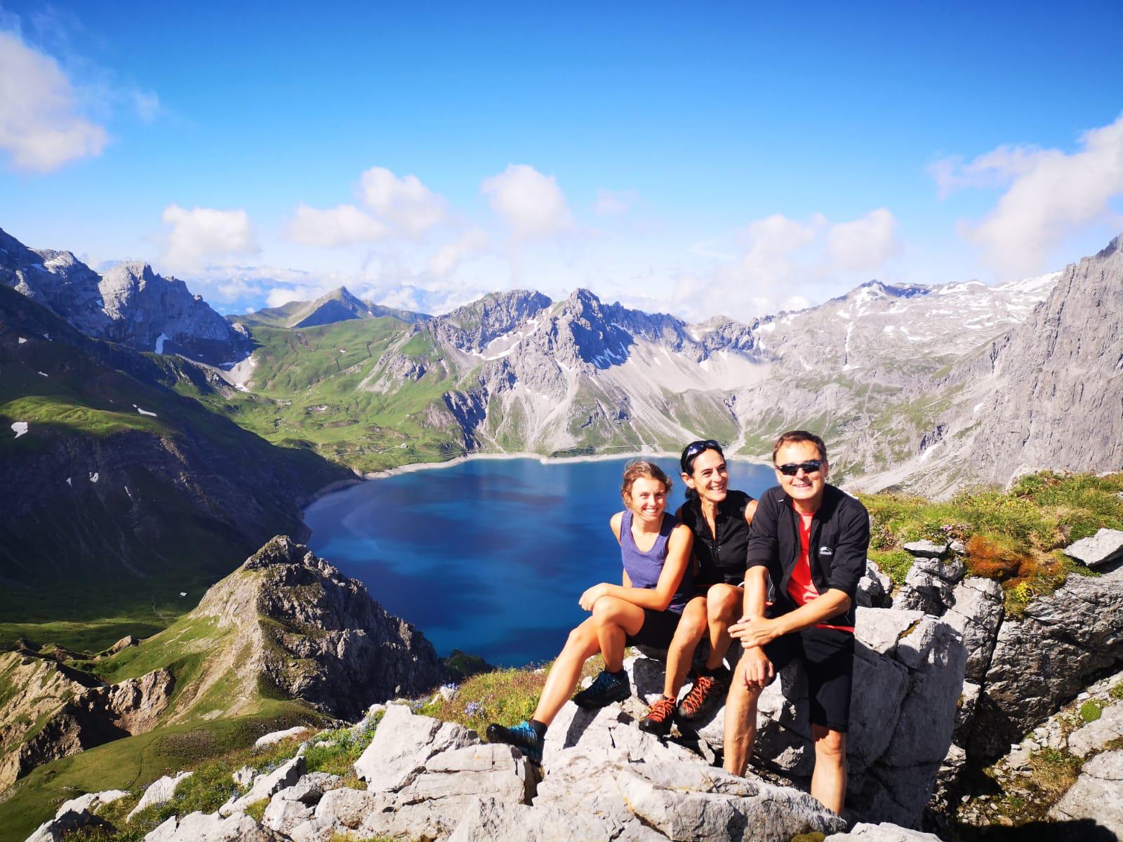 Auf 2414 m ü. M. angekommen werden wir mit dem Blick auf den höchsten Berg des Rätikon, die Schesaplana, und auf einen der größten natürlichen Bergseen der Ostalpen belohnt.